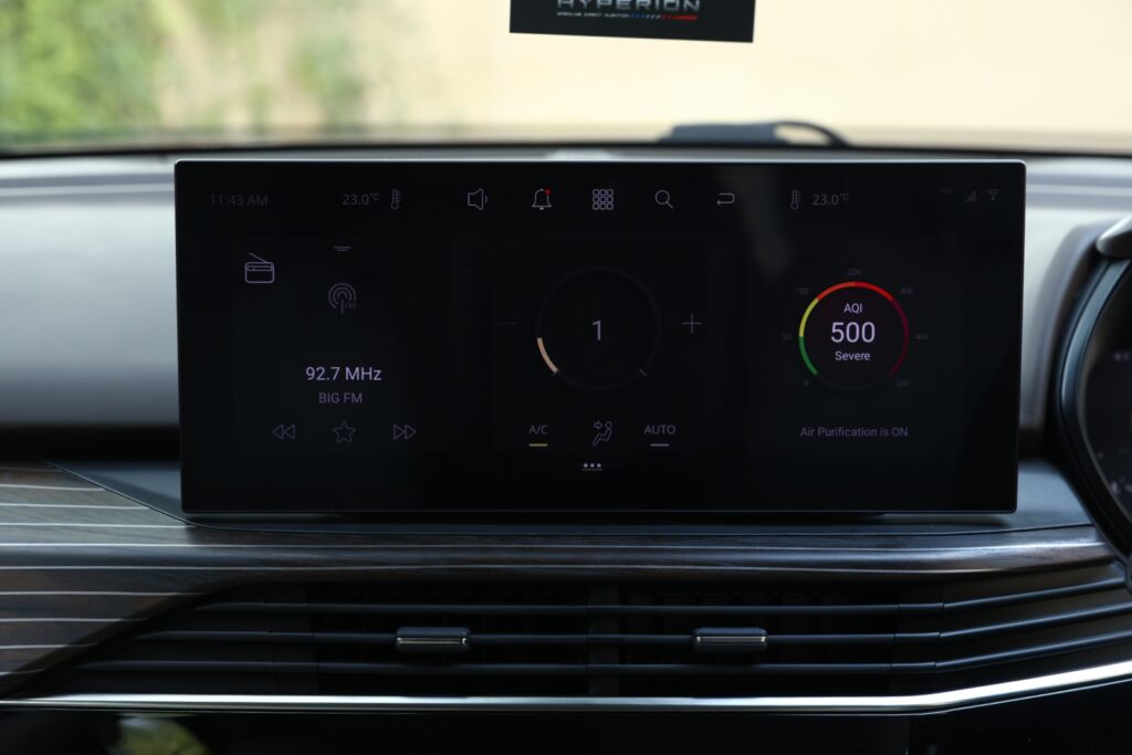 A 14.5-inch infotainment system dominates the centre console, offering crisp visuals and is also a very intuitive one. Crucially, its size feels proportionate, neither overwhelmingly large nor a puny little thing. Just perfect. The 10.25-inch instrument cluster is information-rich, though a more restrained colour palette and improved legibility would enhance usability, particularly for drivers who use reading glasses.
