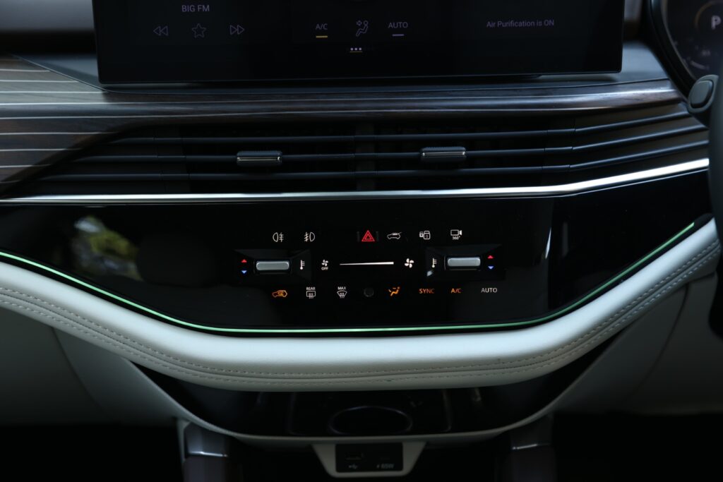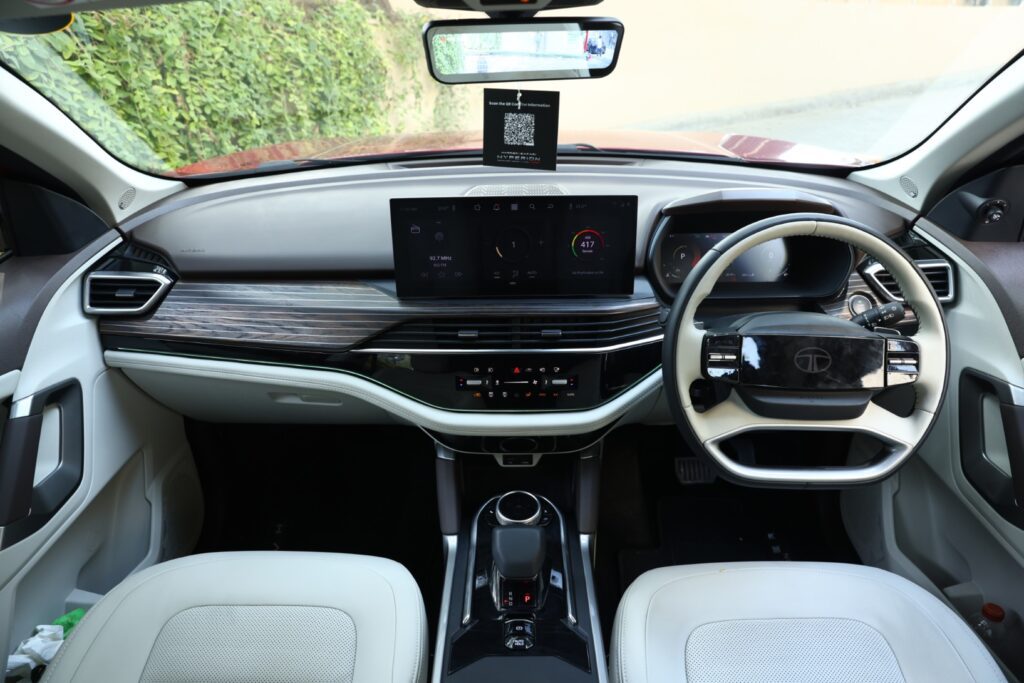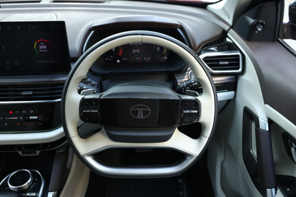 Step inside, and the Harrier welcomes occupants into a cabin without compromising on elegance albeit with what can be best described as “minimalistic.” The ivory leatherette ventilated seats immediately stand out, lending an airy and premium ambience to the SUV. The dual-tone dashboard, finished in black and ivory, is complemented by wooden inserts that may age gracefully over a period of time.