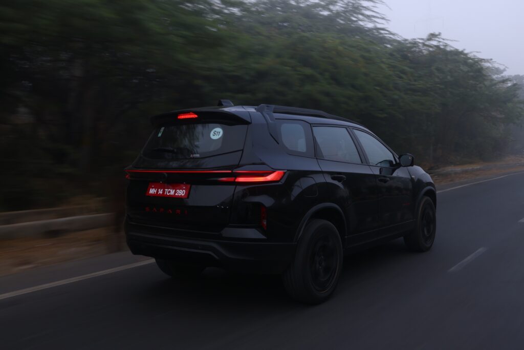 Our test vehicle arrived in the much-admired Carbon Black colour, wearing the aptly named “Red Dark” trim. As the name suggests, red accents play a significant role here, and they’re impossible to miss. From the highlights above the fog lamps to the bold Safari lettering on the tailgate, the bright red detailing is undeniably eye-catching.
