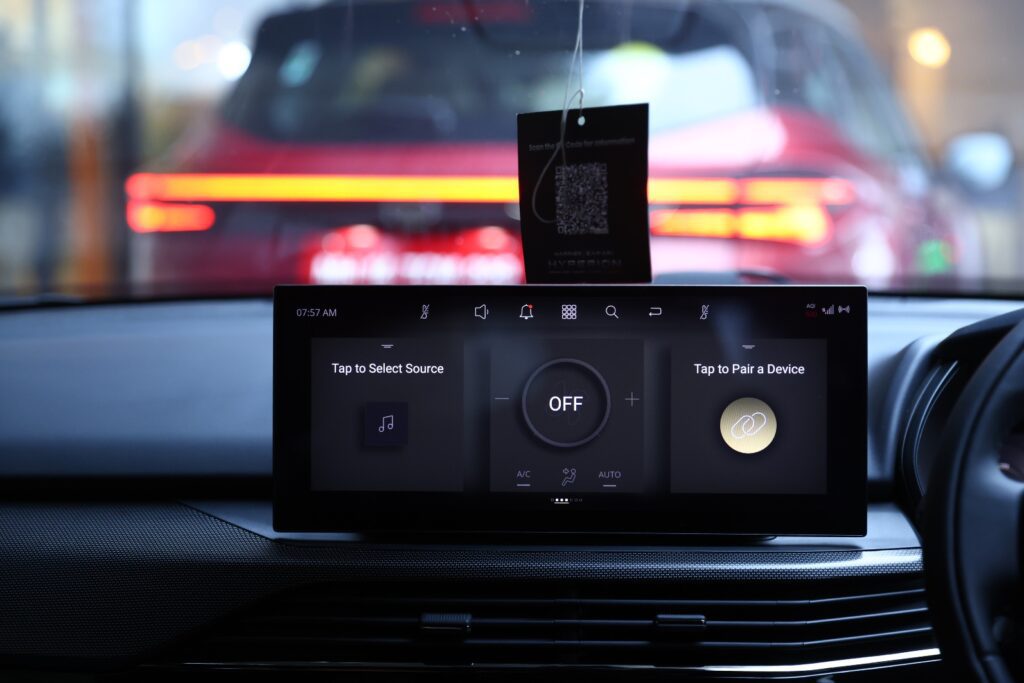 Dominating the dashboard is a large 14-inch Samsung QLED touchscreen, through which you can access and control a wide array of vehicle settings. Visibility of the screen is excellent, even under harsh midday sunlight, as we experienced once the morning fog lifted.